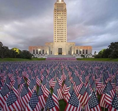 Memorial Day Garden of Flags and Ceremony - every Memorial Day weekend we honor the Louisiana Natives who gave their life in service to our country. We plant 11, 000 American Flags on the grounds of the Louisiana State Capitol. Each flags represents a fallen hero from the American Revolutionary War to present day. The public is invited to participate in the flag planting. Our flags are carried through the streets of Baton Rouge by the For Our Fallen organization as a tribute to their fallen brothers and sisters.
